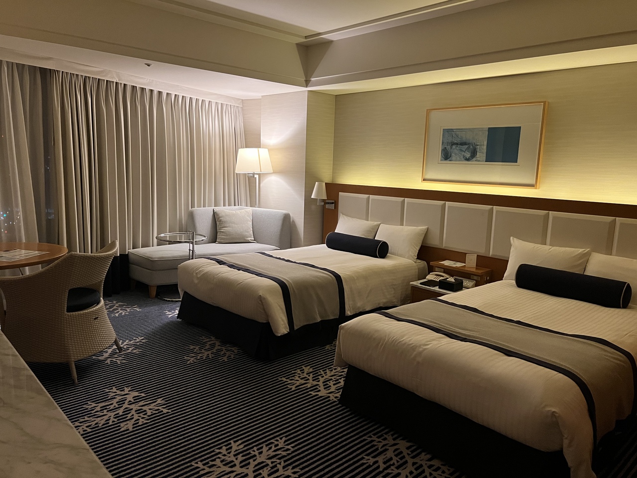 シモンズのベッドは寝心地も良く快適でしたが、昔は喫煙室だったのか、なんとなく部屋にタバコ臭がありそれが原因か、少し喉が痛かったです。