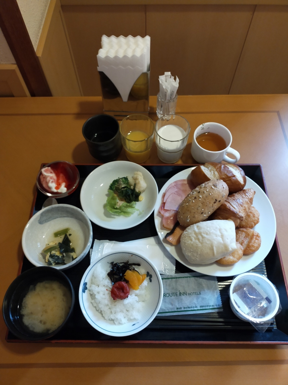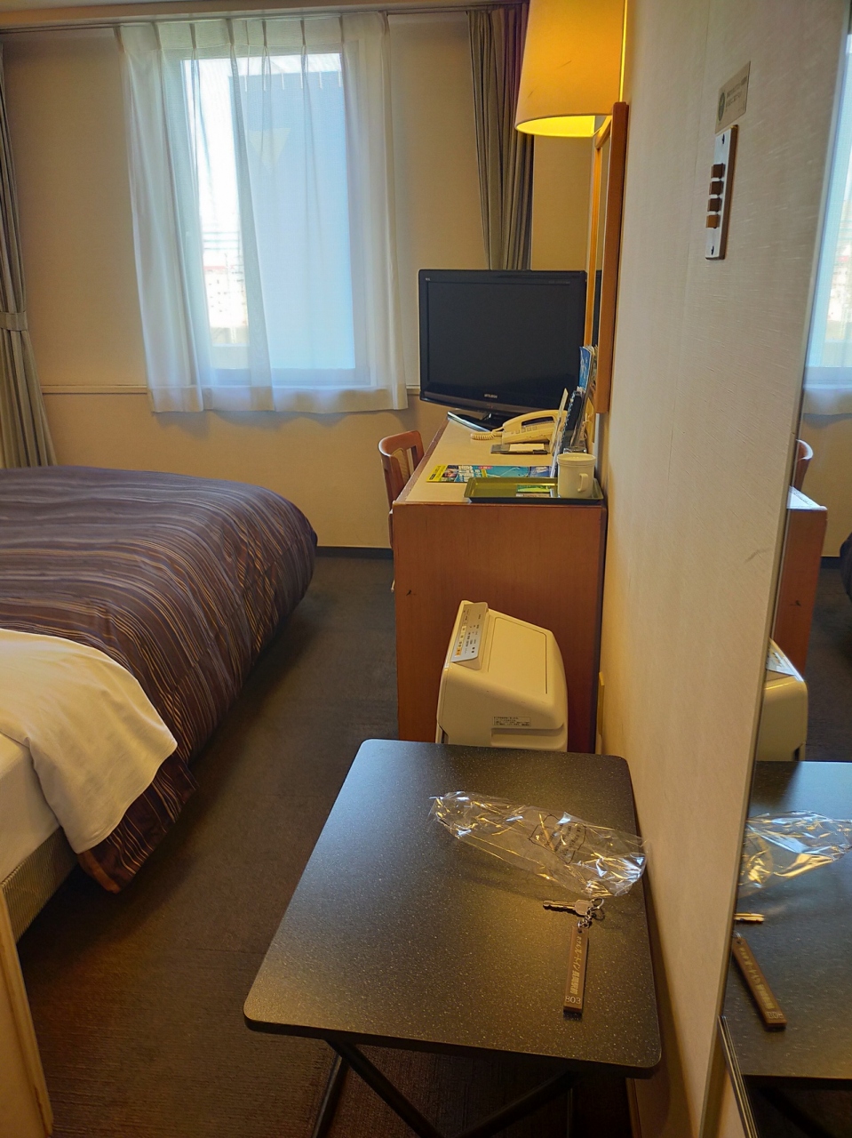 部屋の広さは 普通ですが ベットからドアまでの 廊下の部分は狭いです。 スーツケース置き場があるのは 便利です。 女性のお風呂は狭いせいか 人数制限があるようで フロントに連絡して 鍵をもらいます。 ビジネスホテルでお風呂があるのは ゆっくりできます。 コンセントは ベッドのところに一つ デスクに一つ 他もありますが 全部 使われています。 空の冷蔵庫もあり アメニティは スポンジ 歯ブラシ カミソリなどがあります。 部屋の電気が明るいのは 良いです。 駅から 3分ぐらいです。 駅が近いので 飲食店や買い物などは困りません。 朝食は 種類も味も普通です パンが4種類ぐらいあったのは 嬉しいです。 部屋の wi-fi が遅かったのは 残念な点です。 コーヒーのフリードリンクがありましたが コーヒーが嫌いなので 飲めませんでした。