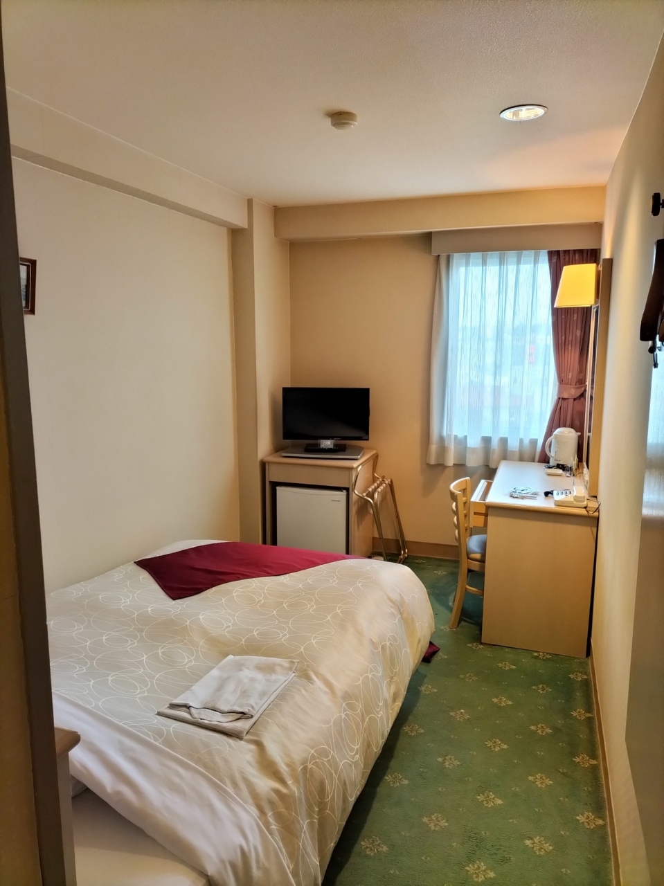 本八戸駅に近く、広い平面無料駐車場がある老舗の大型ホテルです。客室は老朽化が目立ちますが必要なものは揃っています。