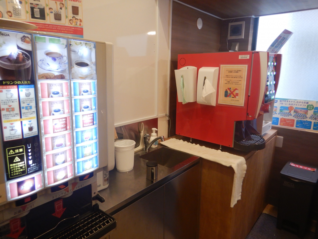 部屋は7平米と狭いが、シャワー、トイレ、洗面所、テレビ、冷蔵庫とそろっている。 1階にはドリンクバーがあり無料で飲める。朝はトーストが無料、夜はうどんが無料で食べられるというサービスがある。