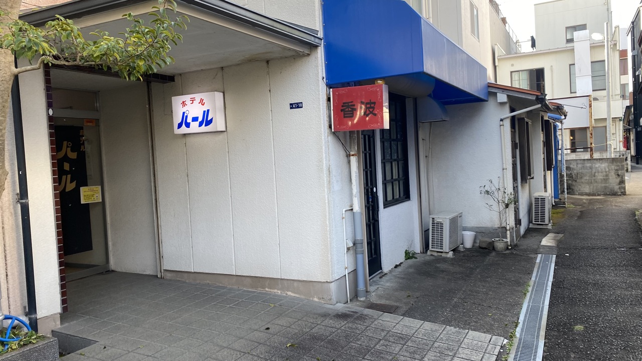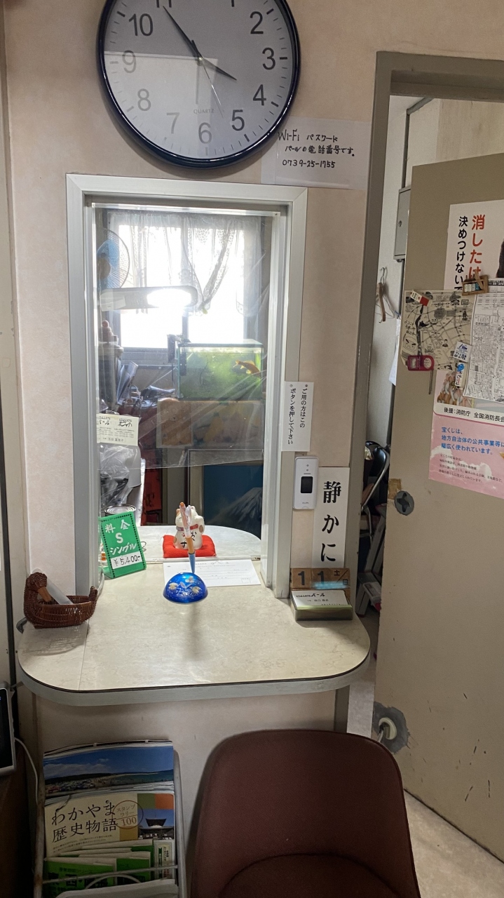 JR紀勢本線紀伊田辺駅から徒歩3分、スナック街の小道の途中にあります。老夫婦が経営しており、チェックインしてしばらくするとサービスの紀州梅のおにぎりとゆでたまご(塩小袋付き)をもってきてくれます。室内はバストイレ付き、レトロな電話機がフロント直通に使われてます。
