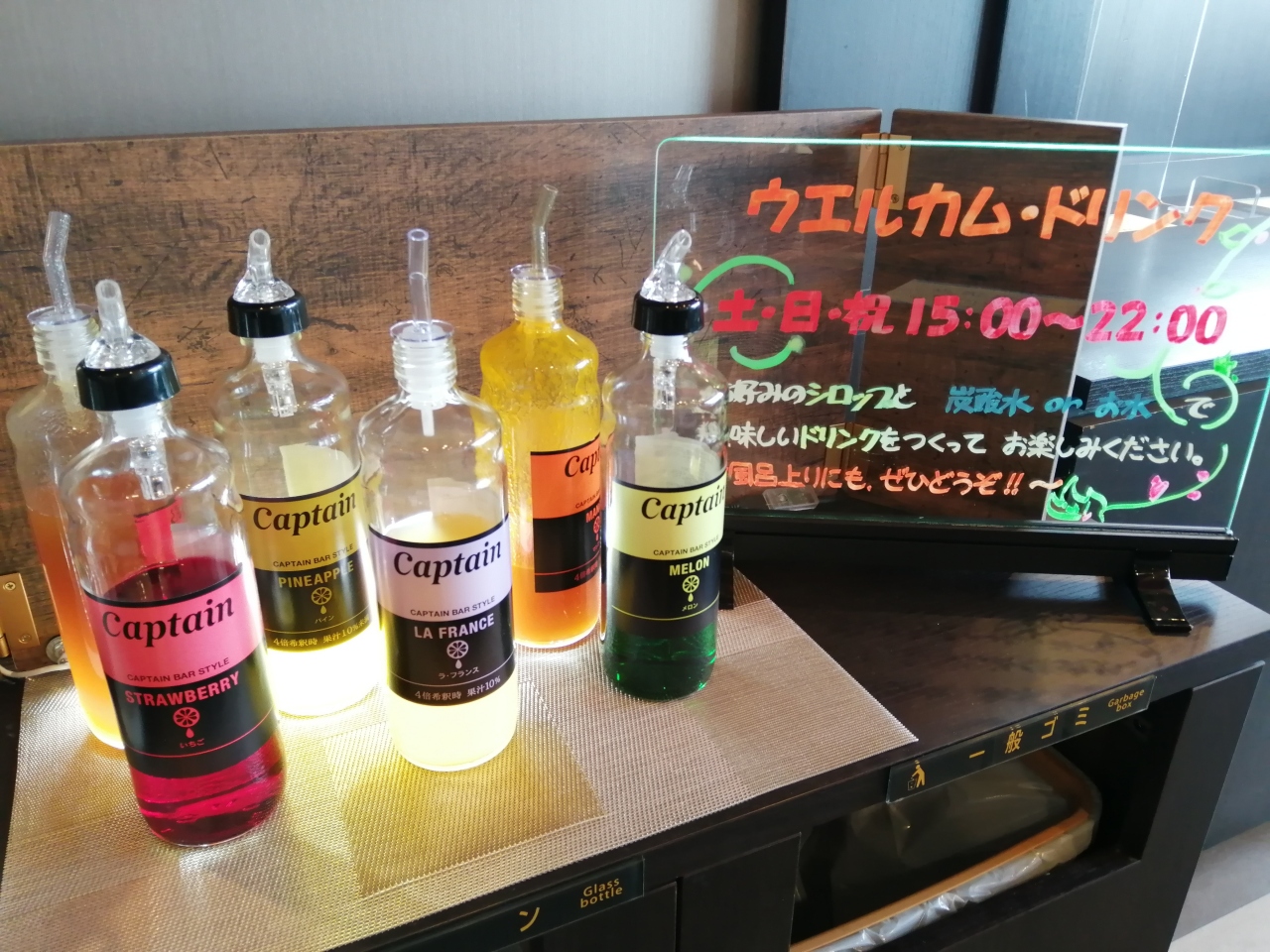 宿泊日の1週間前に始まったばかりだという週末限定のウエルカムバーは、ICが近くにあるということでアルコールなしのウエルカムドリンクバーでした。