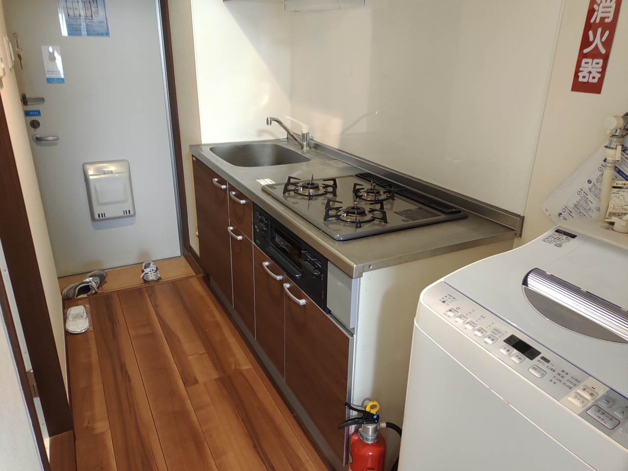 ワンルームマンション利用のホテル。部屋に、キッチン、電子レンジ、冷凍冷蔵庫、洗濯機が付いていて便利です(ただ、食器・調理用具はありません)。フロントスタッフが常駐していないので、少し不便でしたが電話をするとすぐに来てくれました。