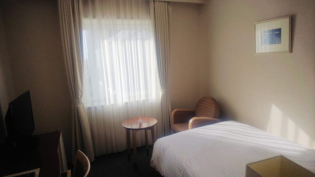 駅前すぐ、バスターミナルやロータリーの向かい側にあり、迷うことなくすぐにたどり着けます。建物などは少々古めなのでしょうが、きれいにしてあるのでそれほど気になることもなくすごせるふつうのシティホテルです。モール温泉の大浴場がありますが、5、6人がはいるのにちょうどよさそうな広さで、それほど広くはありません。