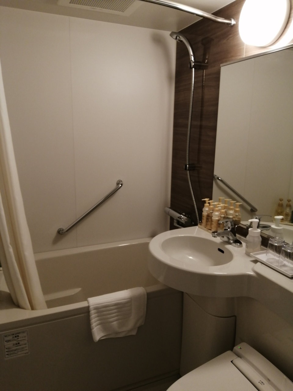 新しいホテルなので部屋がきれいで、バスルームに化粧水などの女性用アメニティがボトルごとあったのがよかったです。