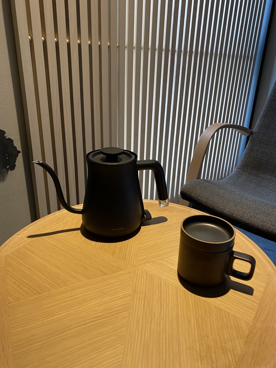 朝は、日が入ってきて、また違った雰囲気に。部屋に帰ってきてからのコーヒータイムもいい感じ。