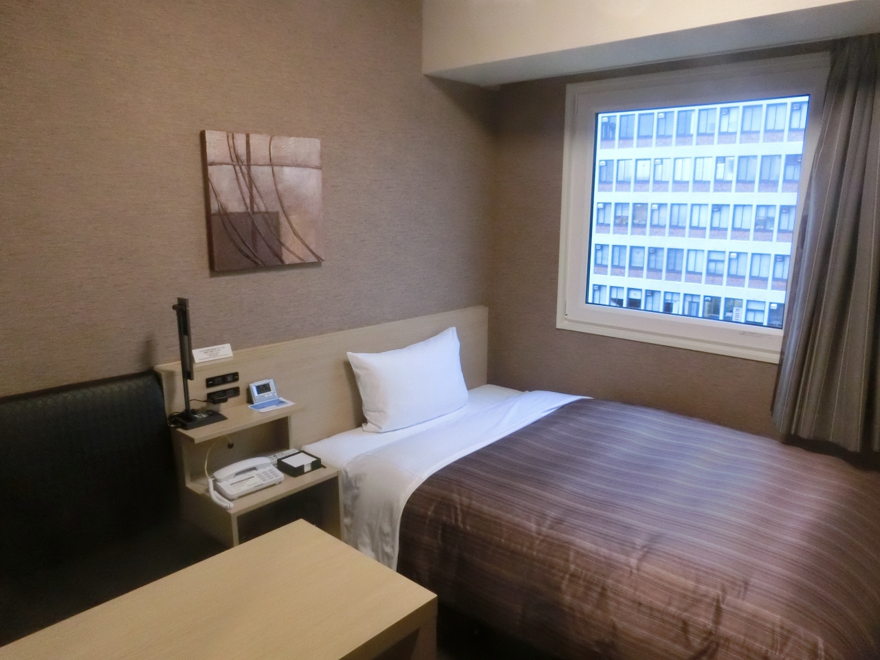 大浴場と無料の朝食バイキングがウリのホテルチェーンです。高岡駅北口から徒歩2分、右に目を向ければホテルが見えます。宿泊した客室はシングル9平米。コンパクトですが清潔感がありベッド幅130cmでゆったり。近くに飲食店や居酒屋もあります。バスターミナルがすぐそこなので世界遺産バスに乗って五箇山・白川郷を観光するのにも便利ですよ。