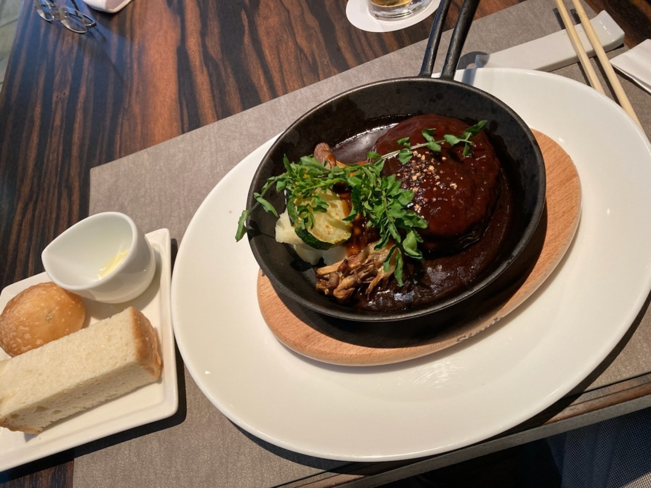 東京ビーフのハンバーグランチとランチビールを注文しました。それぞれ税込3,200円、550円です。ランチはクーポンがあったので割引きされました。ハンバーグは金額相当の美味しさでした。