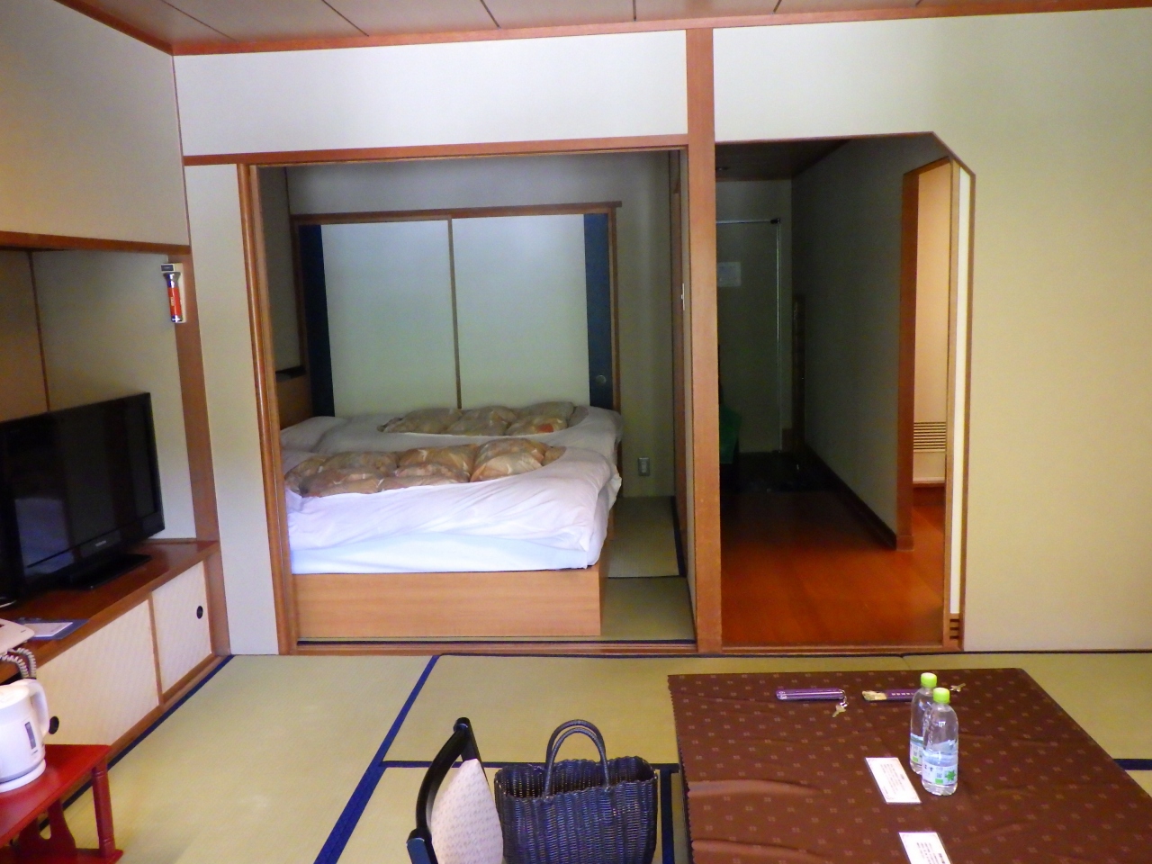 部屋のタイプは色々あり、和室10畳+4.5畳(ツインベッド)を予約。和洋室大好き。エアコンがイマイチで窓が開かなくて、湯上りは暑かったかな。