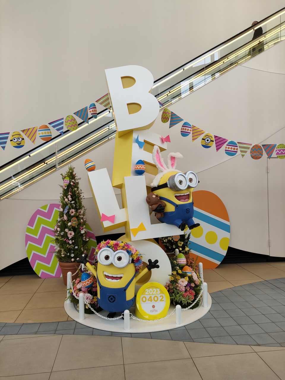 現在はUSJとのコラボ装飾を館内で実施しておりますので、ミニオンのイースター装飾をお楽しみいただきありがとうございます。
