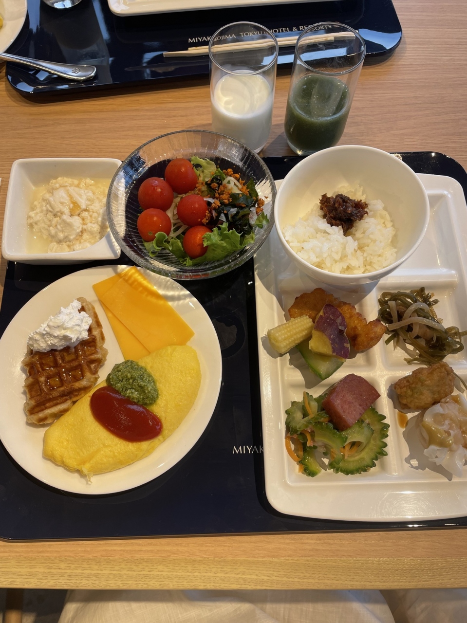 夕食のやえびしは期待外れでしたが、朝食のブッフェは種類豊富で美味しくて満足。入口にテイクアウト用コーヒーがありチェックアウトの時持って行きました。事前精算しておけば、チェックアウトはフロントを通さずインフォメーションカウンターのシーサーのお口に入れれば完了。スムーズです。