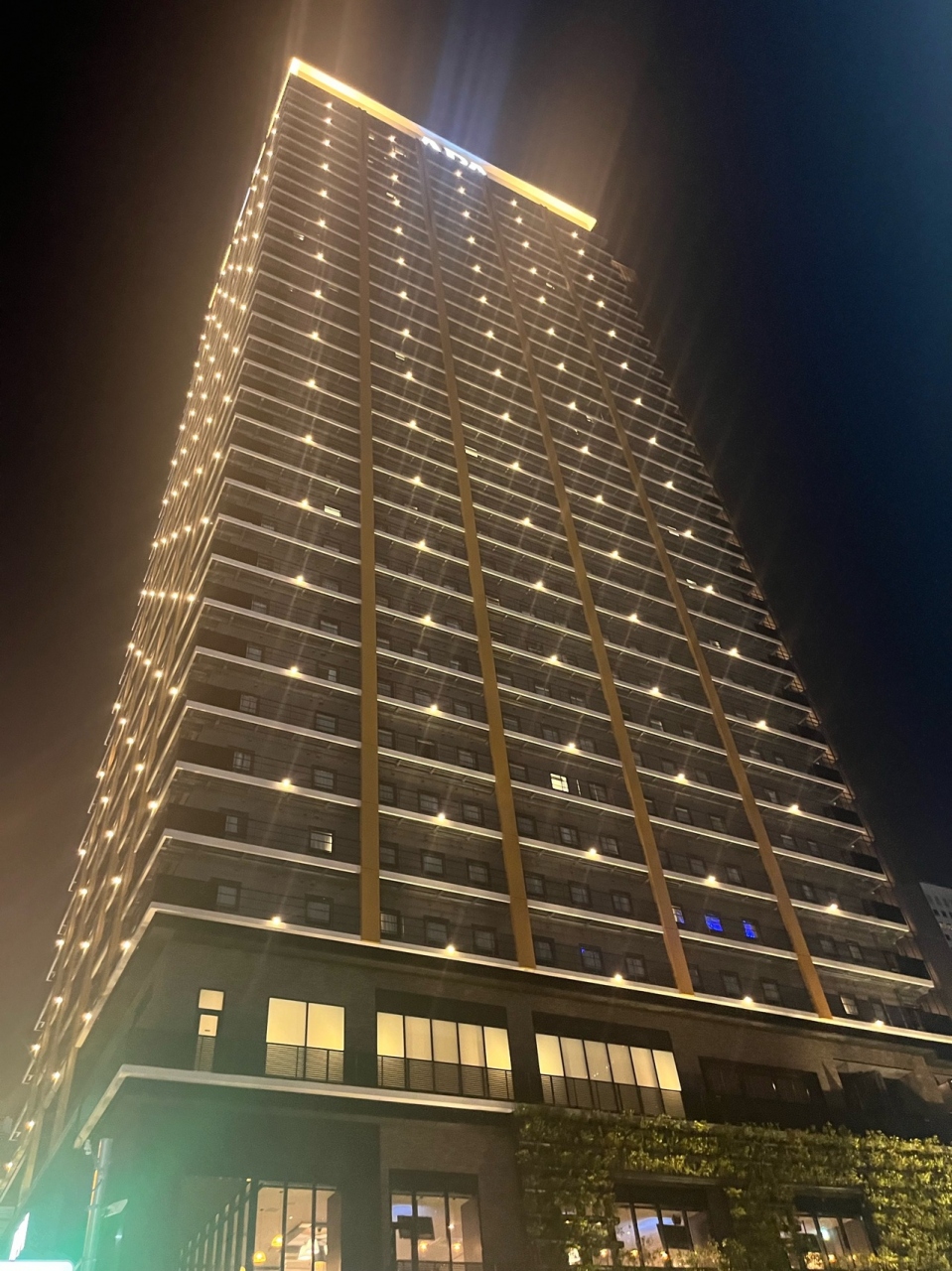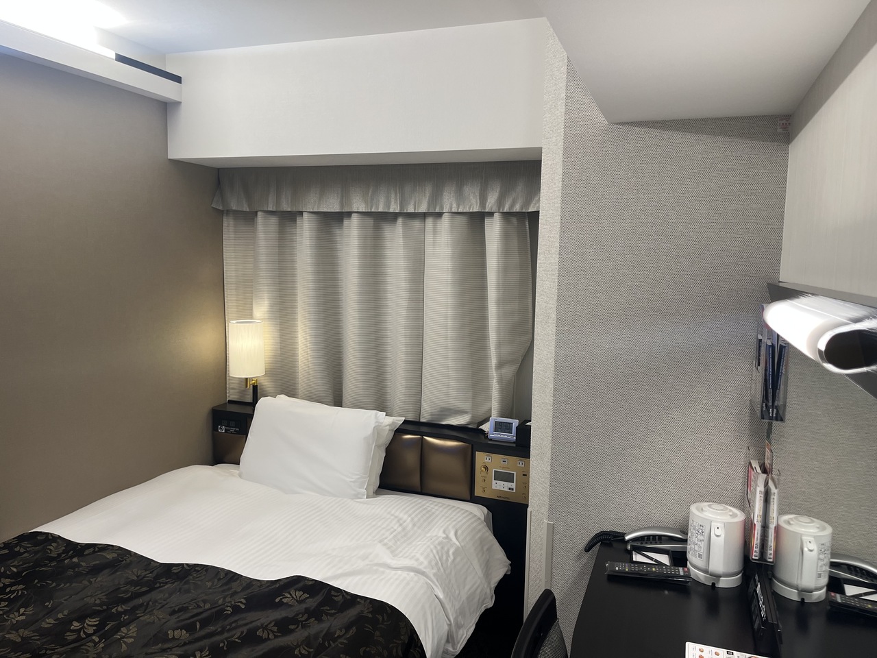 2023年2月にオープンしたばかりの日本最大級のアパホテル。客室は1700あり、ワンフロアで見ても50部屋近くありました。そのため、部屋割りによってはエレベーターからかなり遠く内向きだと警官もまったくありません。ホテル内に大浴場とコンビニがあり、いつ行っても人がたくさんいました。