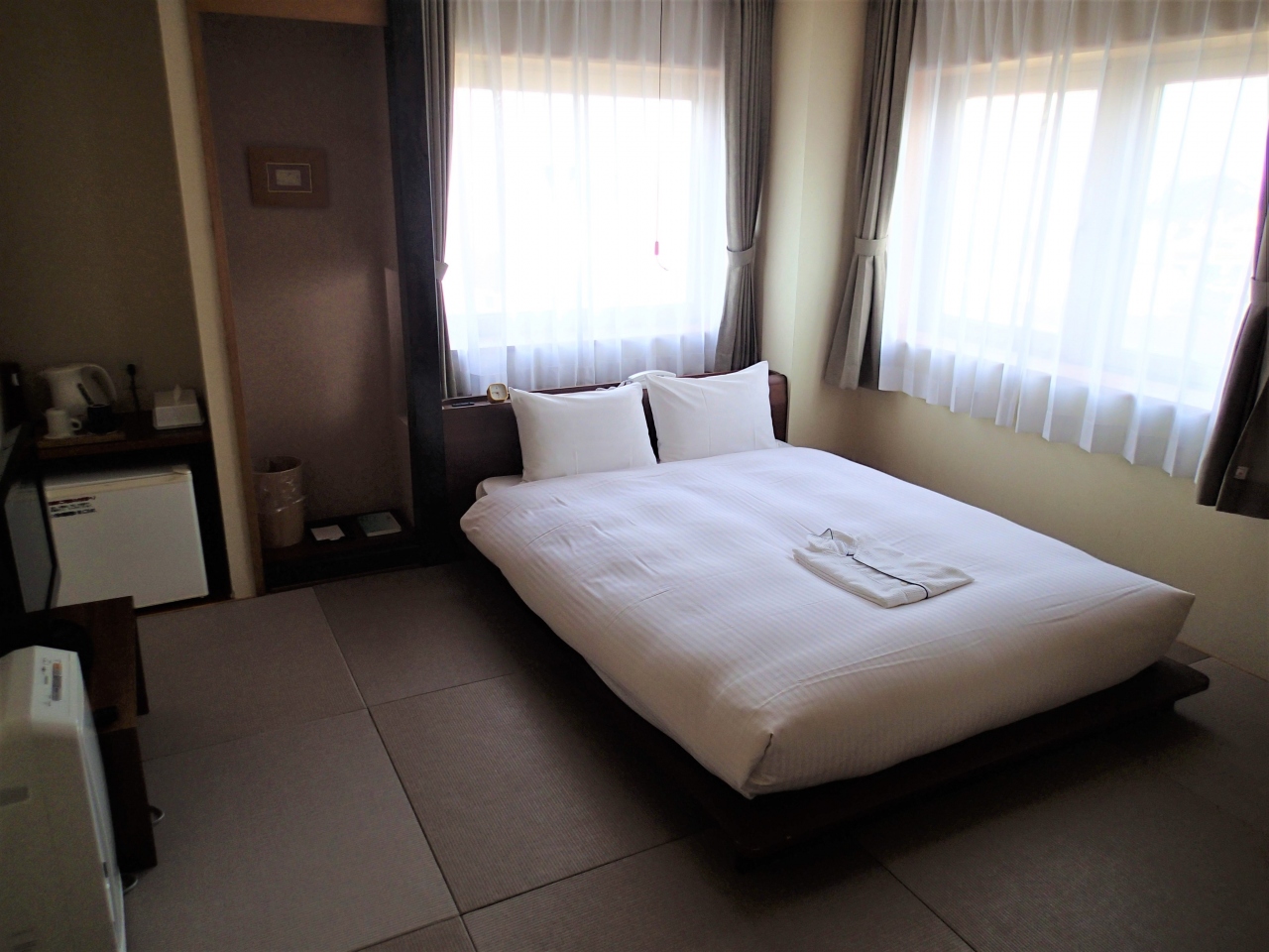 稚内駅から歩いても5~6分程度の所にあります。北防波堤ドームもすぐ近くにあり、オホーツク海を見渡すことが出来ます。温泉を引いた大浴場も完備されています。利用した部屋は、和室へダブルベットが置かれている部屋の為、畳の上に寝転んだりして広く使うことが出来ました。