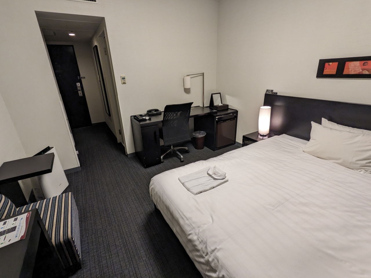 天文館の繁華街真っ只中のホテル。アーケード街にありました。当日予約で7000円ポッキリ+全国旅行支援でお得に泊まれました。さて初のリッチモンド系列ですが、無難な黒の内装、広めのお部屋でビジネスマンを意識している感じです。空調の効きが悪かったのが難点ですが、それ以外は良かったですね。