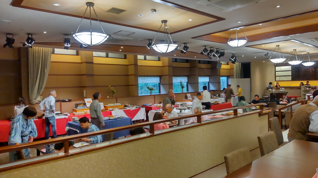 朝食は9時までのバイキング。レストランは別館? にあり、ずいぶんと歩いていくことになるが、ツアー客が押し寄せオーぺレーションもイマイチなので、飲食ともに充足せず、のんびりできない感じ。9時近くにいくと、さっさと出て行ってくれという感じで何度も促される。