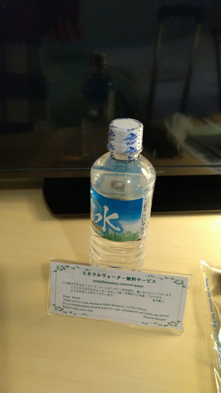 ミネラルウォーターがサービスで置いてありました。
