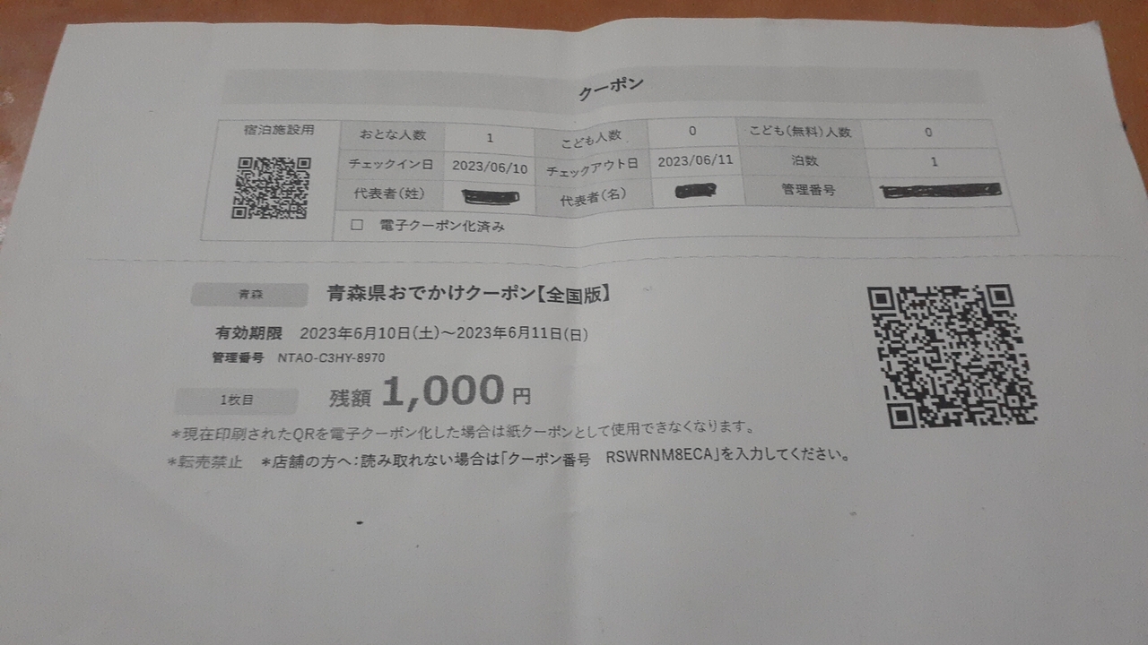 なお、青森県の全国旅行支援のクーポンですが、残念ながらスーパー・コンビニ等は対象外で、飲食店もおさないやPope等は対象外でした。またあおもり旬味館内にあるNewDaysも対象外であり、やや使い勝手が良くないです。