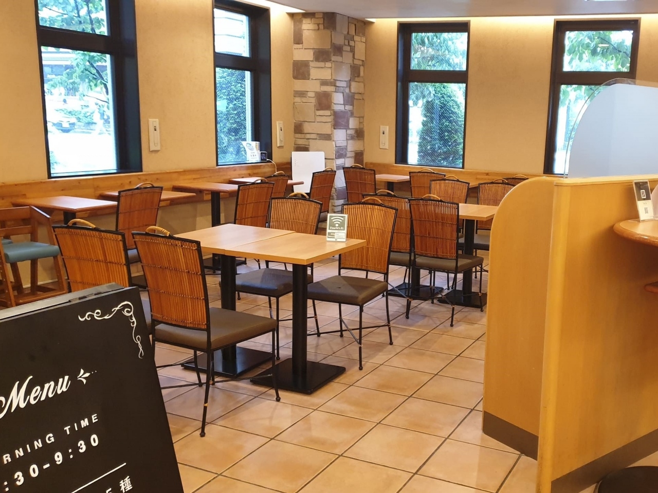 朝食は1階だがスペースが狭め。席が無いのではと心配になったが、部屋に持ち帰って食べても良いようだ。品数は少なくシンプル。パンは6種類ほどあって、ミニサイズなので食べ易い。ハムマヨパイが個人的に美味しかった。スープはコーン、ビーフコンソメ、クラムチャウダーの3種 (スープマシン)。その他シリアル、塩ゆでたまご、ドリンクなどが並ぶ。野菜や調理が必要なものは無し。