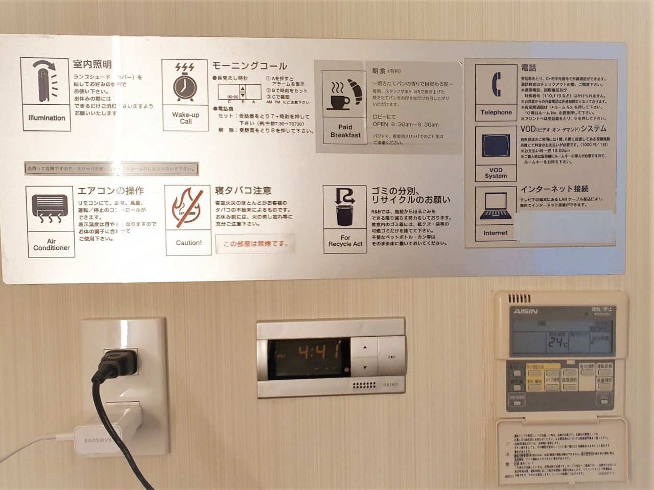 部屋の器具の説明やエコ案内がこまめに英訳してある印象。物によっては多国籍語で案内が付いている。