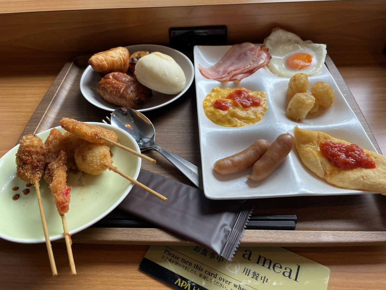 2023年2月に出来たばかりの新しいホテルです。シングルルームの客室は広くはないですが、コンパクトで無駄のない造りです。テレビは大きく、ベッドの寝心地もよかったです。大浴場も広く、館内にコンビニがあるのも便利です。朝食のビュッフェは串揚げなどご当地メニューもあり楽しめました。営業時間が6:30~13:00までと長いのでランチ代わりにも使えそうです。立地が良いのでどこに行くのも便利でした。プランに付いていたアパ社長カレーも美味しかったです。