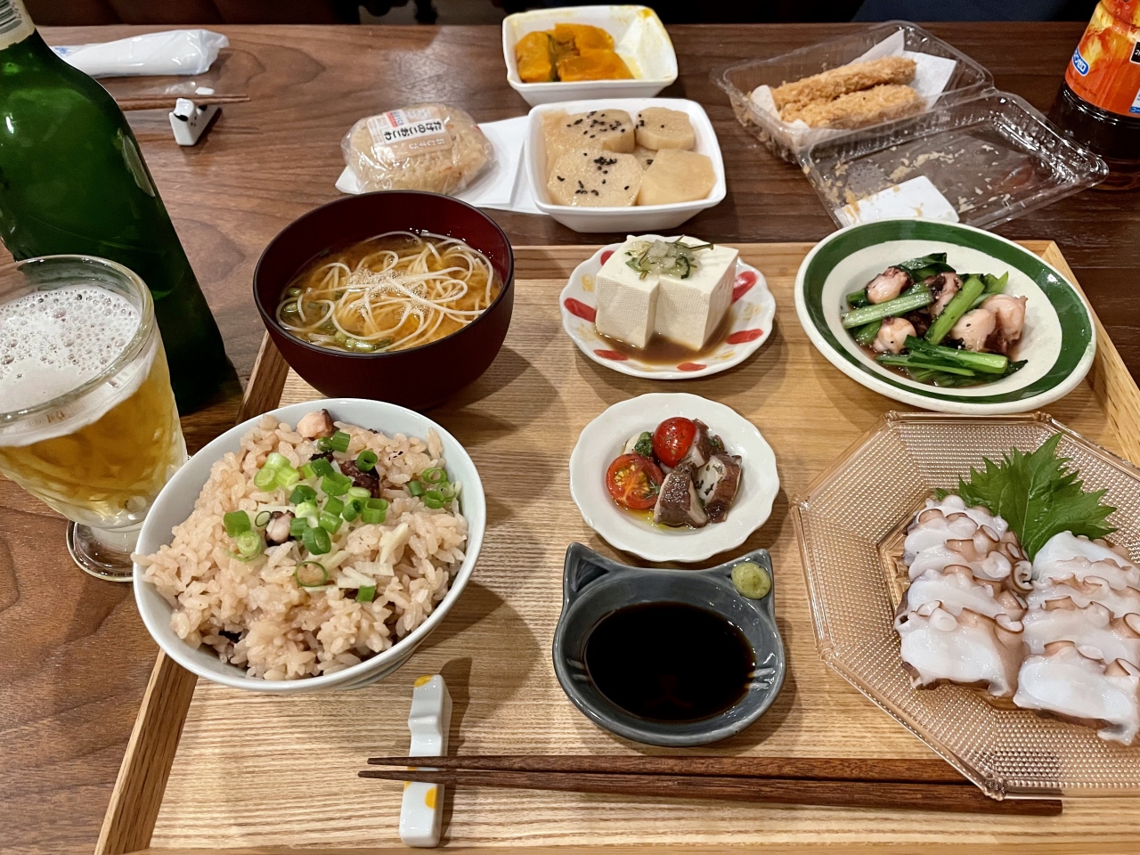 夕食は予約制で私が行った時は蛸の定食、1,100円でした。