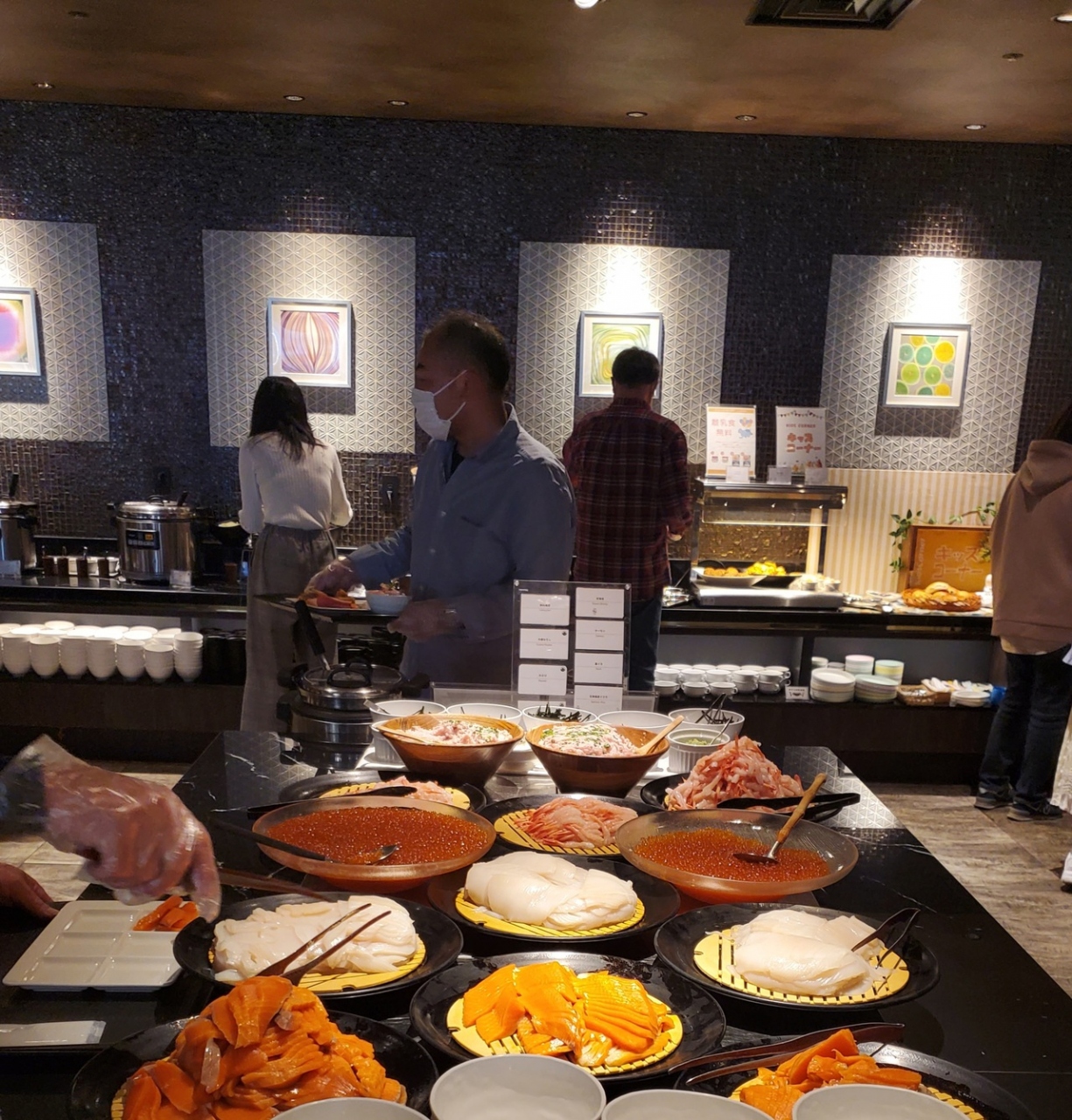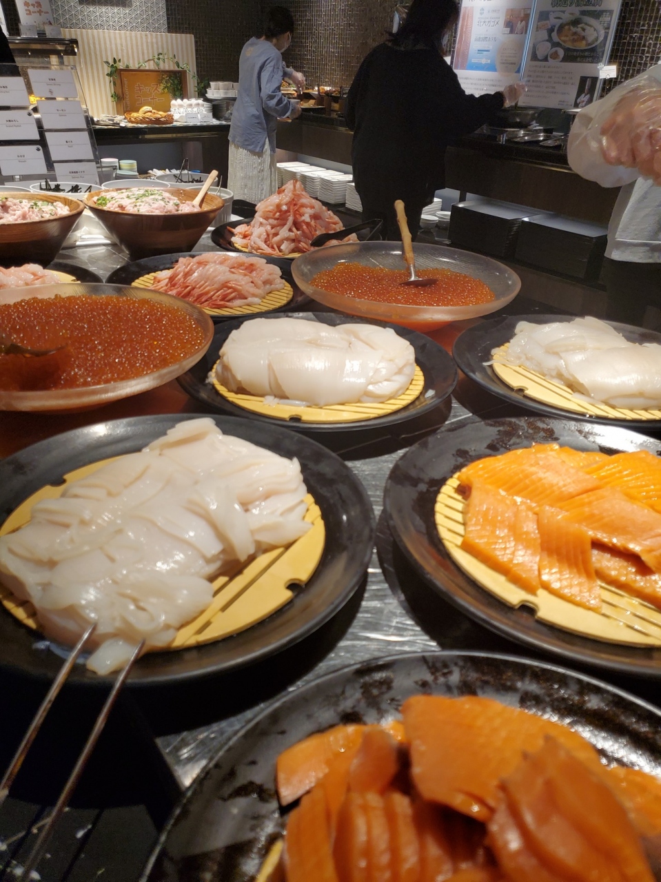 6時40分頃に朝食会場へ行ったら 待つことなく入れ大きいどんぶりに入ったイクラの写真も撮れるくらい余裕ありました