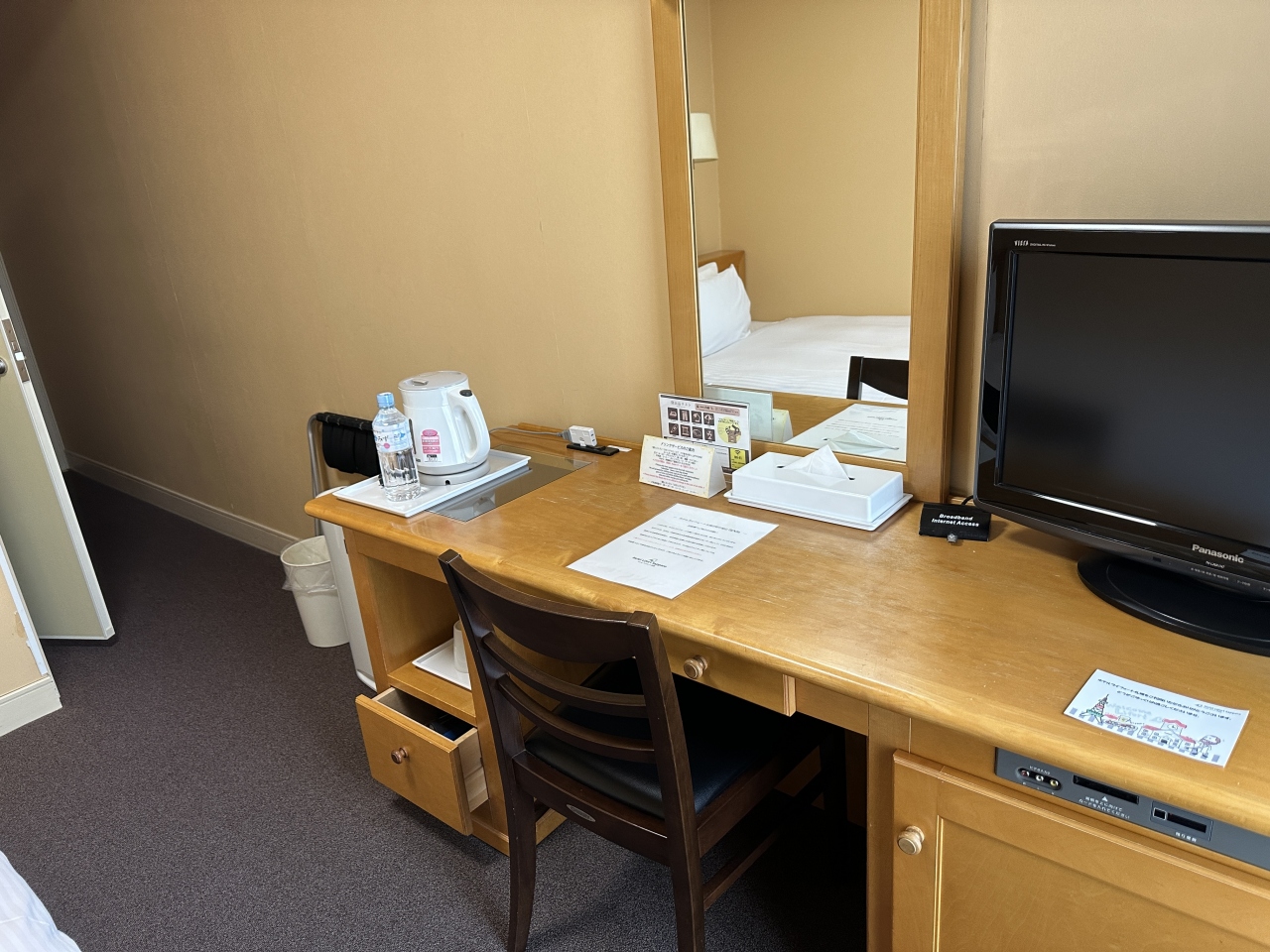 - ビジネスホテルより少しゆったりしてますが、机や椅子、コンセント等が古い