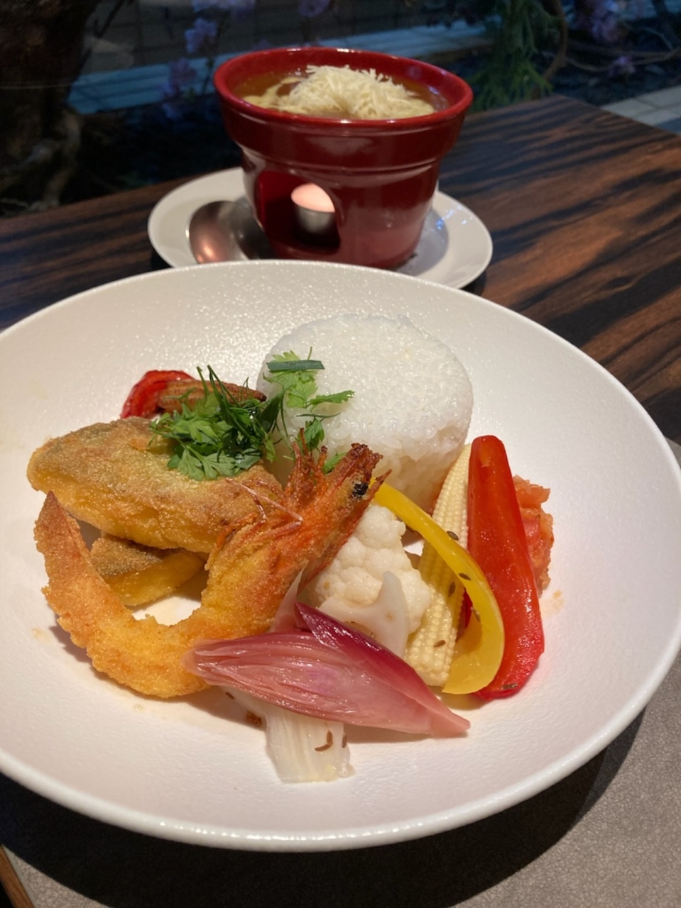 今回は新ランチメニューのシーフードカレーを頼みました。