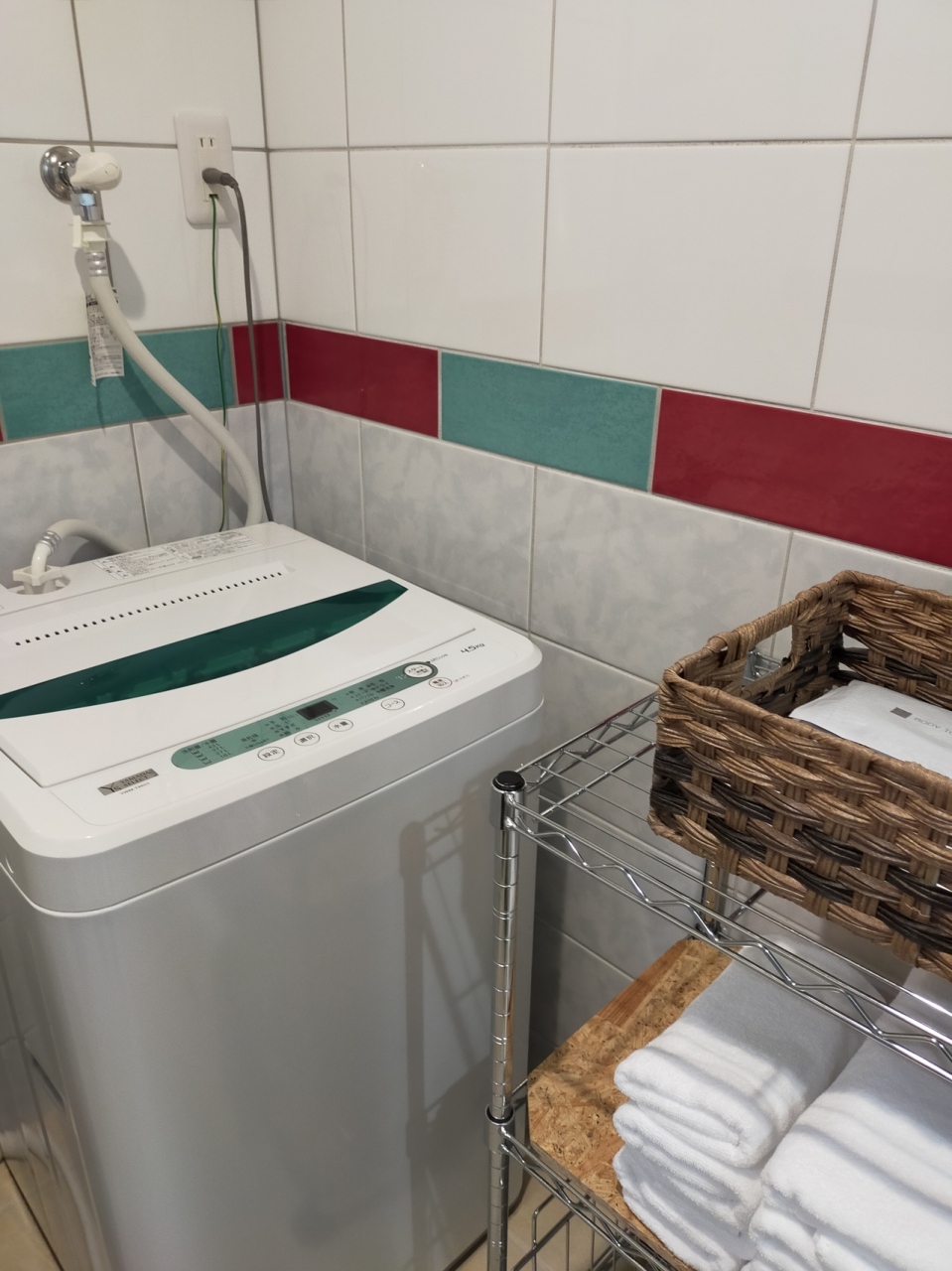 前回泊まった時に、階段はないのがわかったので、今回は泊まる分だけの荷物を運ぶようにしたら楽でした!洗濯機があるので、洗濯物も洗えます。洗剤だけはないので、近くのコンビニで買いました。