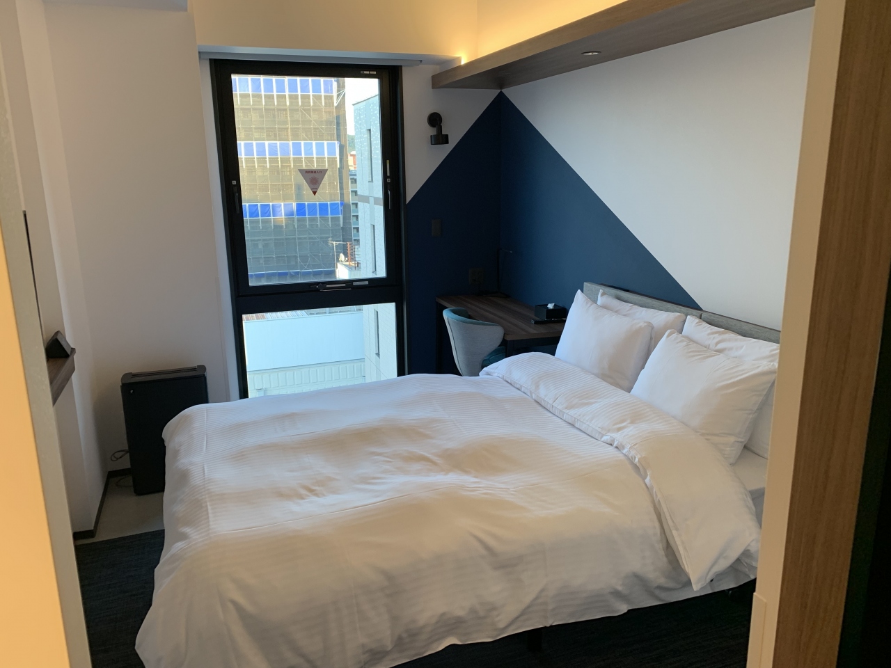 京都駅からは電車の乗り換えが必要ですが、大宮駅から歩いてすぐの所にある、新しいホテルです。チュック・イン、アウトは、入り口のモニターで行い、アメニティも、エレベーター前のコーナーから必要なものを自分でピックアップして部屋に持ち込むという方式でした。朝食が無料でついており(お握り1個とおかず2品)、1泊6000円程度と、京都駅近隣としては、非常にコスパの良いホテルでした。比較的新しく、また利用してみようと思いました。