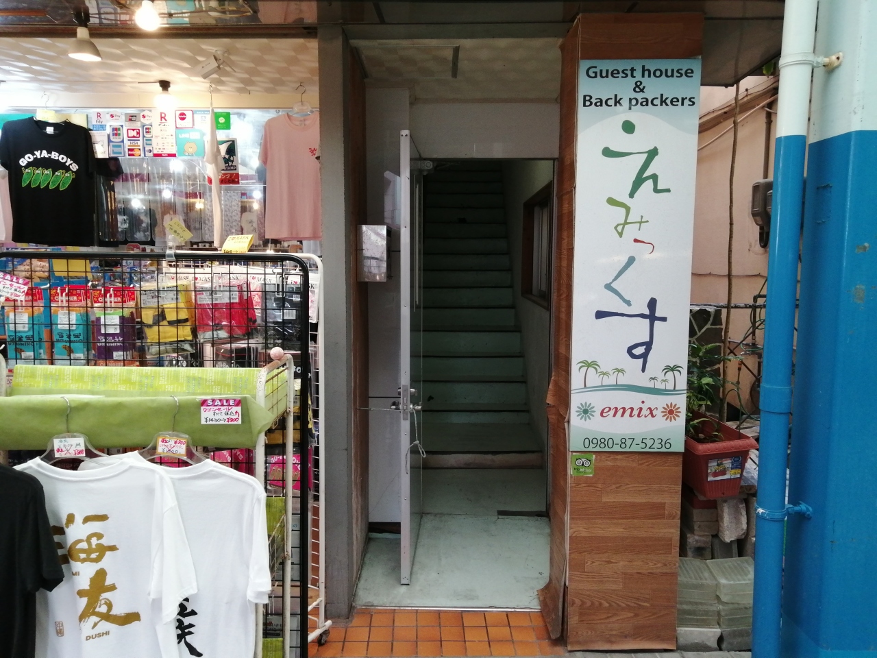 ユーグレナモール内に入口がある格安G.Hです(裏口もありますが…)。バスターミナルからは約300m、石垣港離島ターミナルからは約450mと楽々歩いて行ける立地のよさです。繁華街のど真ん中にあるわりには静かです。