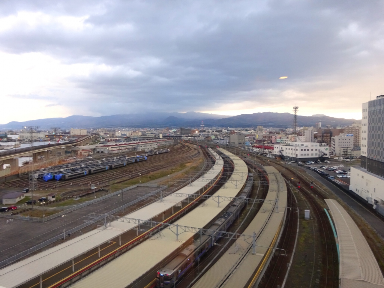 客室も、函館山が見える「マウンテンビュー」側と、函館駅の列車が見える「トレインビュー」側がある。