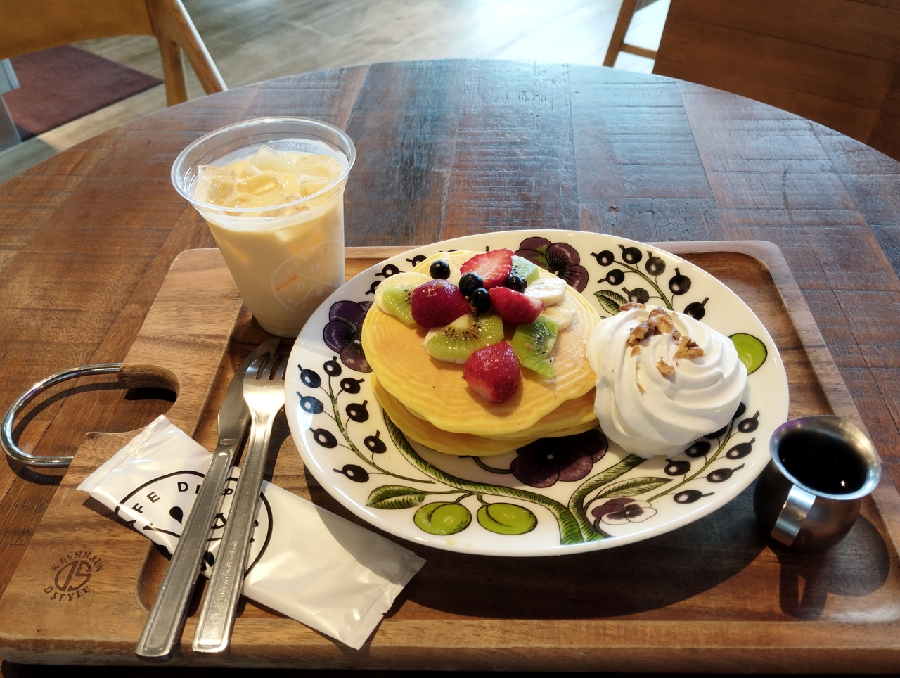 朝食はカフェでの朝食で、いつもパンケーキにしており、フルーツ盛りだくさんで良いですし、ドリンクがお代わり自由で、最後の一杯をテイクアウトして部屋で飲めたのもよかったです。