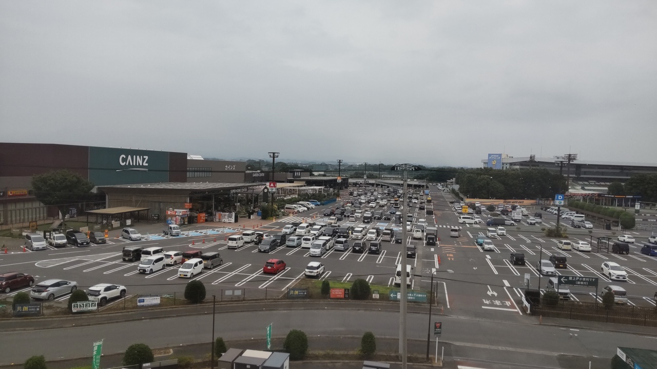 部屋は道路と反対側で景色はカインズとオートレース場。
