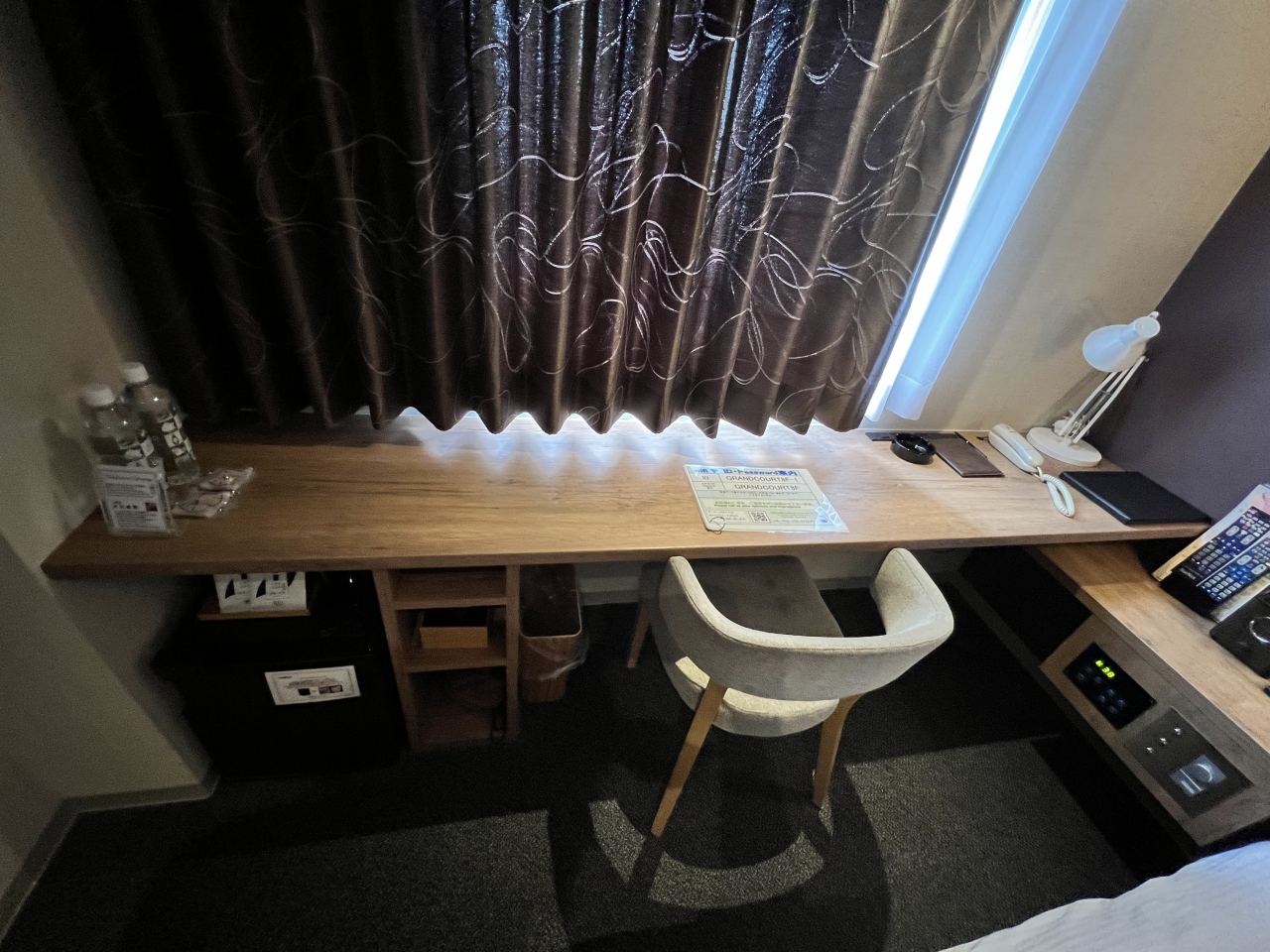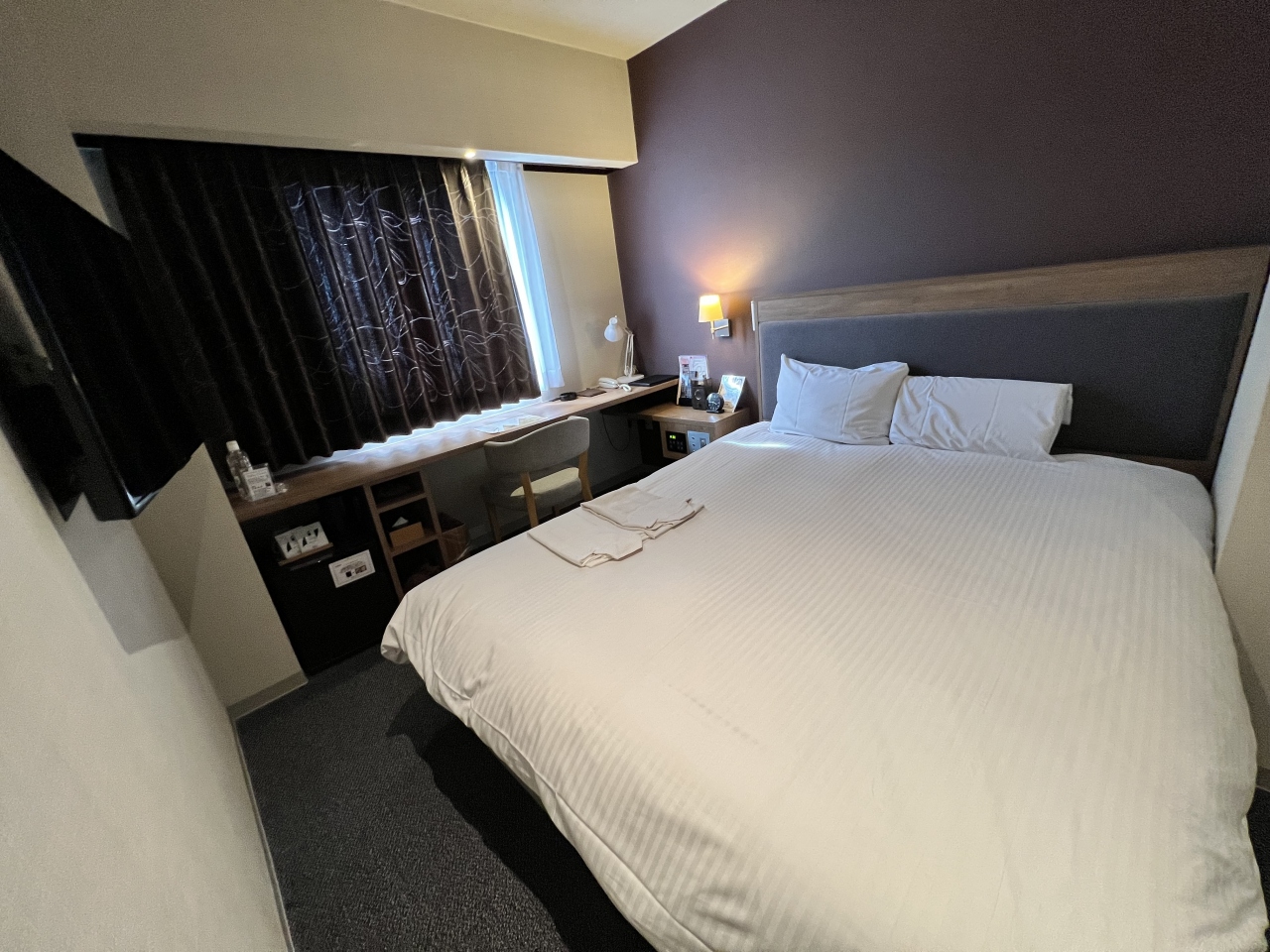 部屋は広くはないですが、狭く感じない配置。ベッドがすごく寝心地がいいです。