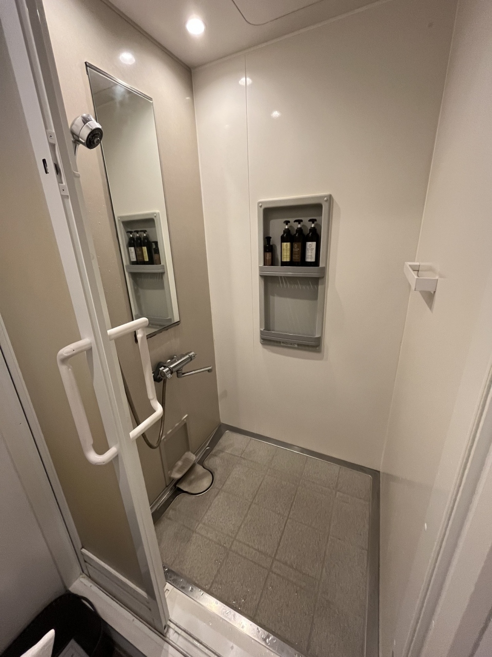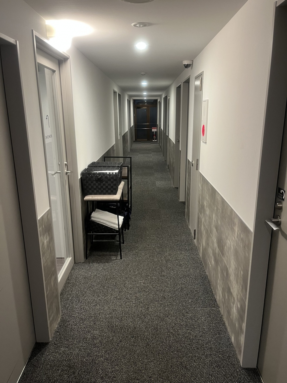 各フロアに3つのシャワー室でした。まだ新しめでしたが清掃ができてなくて少し残念でした
