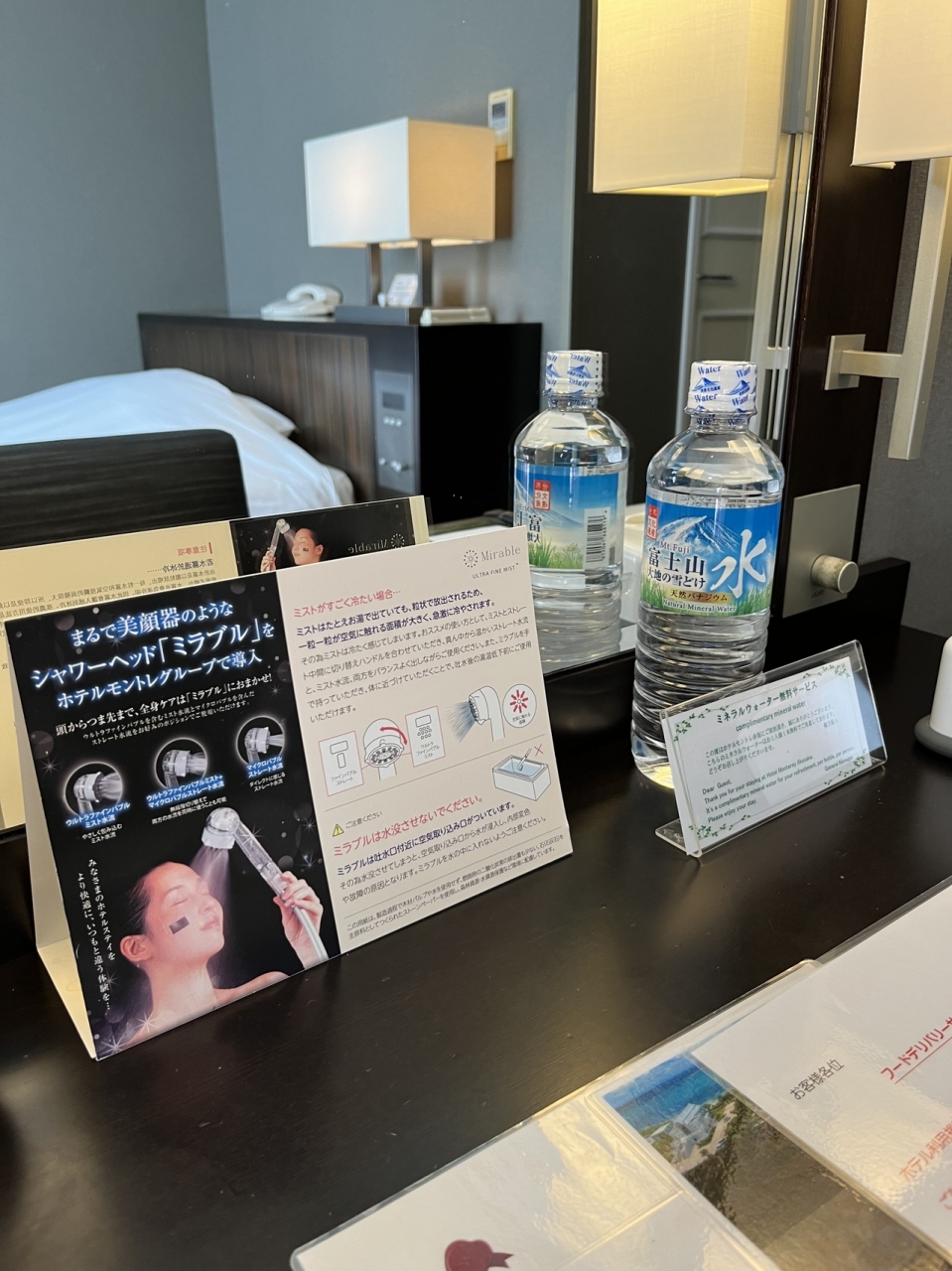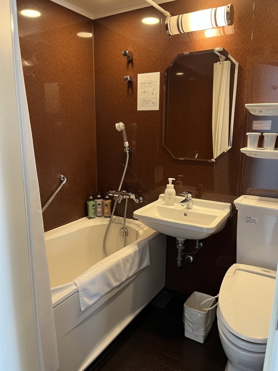 ホテルはそこそこ古いので、バスルームが若干かびくさいのは残念でした。お風呂にはCMでよく見るミラブルのシャワーが付いていて、本当にマジックで皮膚に書いても落ちるのか、試してみたかった。