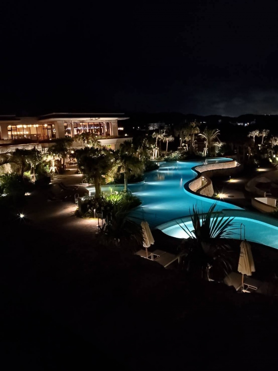 部屋からはプールが見えて夜もライトアップが幻想的でとてもきれいでした。素晴らしいながめ!