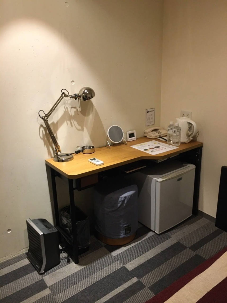 部屋もビジネスにしては広くて机もけっこう大きめ!普通のホテルだとこういうところにテレビが置かれて机としてのスペースは狭い事が多いですがここはテレビはここにはないのでスッキリしてていいと思います!