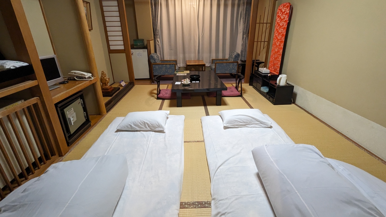 3月に宿泊した時は、ベッドの寝室と和室の2部屋があるメインの中央館でしたが、今回は東館にある布団の1部屋タイプでした。