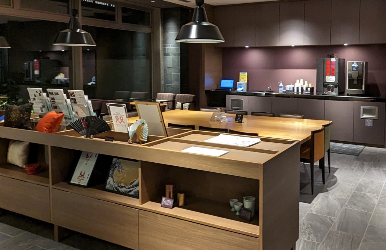 宿泊の際は、ここのテーブルで、無料のコーヒーを飲んで、置いてある観光スポット地図を見ながらおしゃべりするのは楽しいことだと思います。