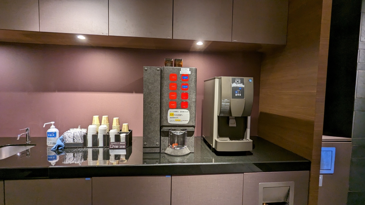フロントロビーの近くに、大きなテーブルが置いてあります。休憩 打ち合わせ用に個人、カップル、グループで自由に使えます。