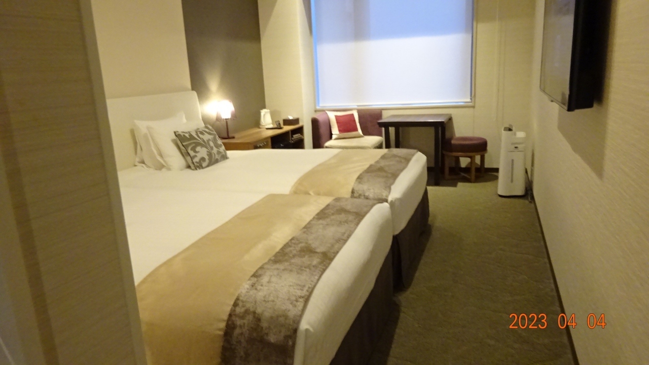 部屋はプランによると思いますが、今回もセミダブルサイズベッドのツインでした。