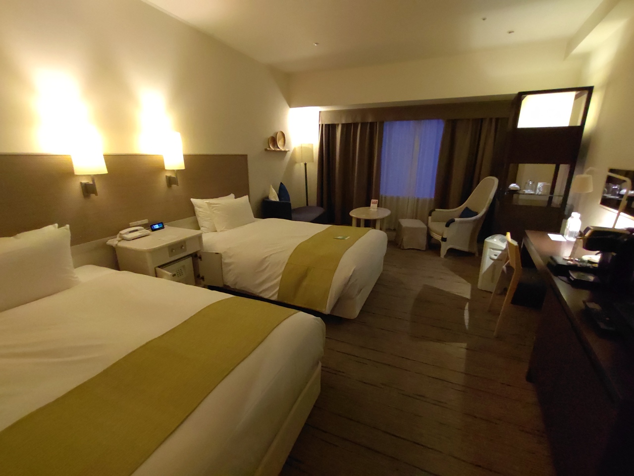 青島が見えるスーペリアツインに宿泊しました。晴れた朝の眺めがとても良かったです。