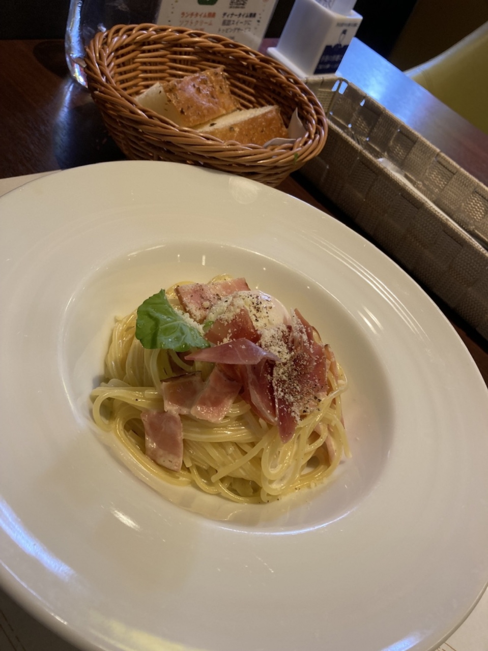 シーフードマリネサラダ、生ハムカルボナーラ、お肉、デザート、コーヒー、ホカッチャは前回おかわり不可でしたが、スタッフから声掛けがあり、おかわり復活していました。