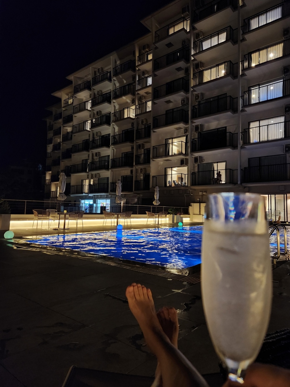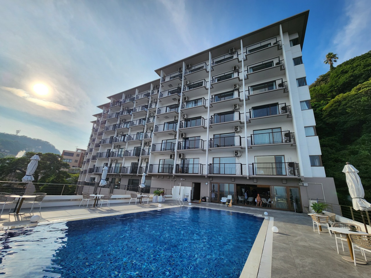 熱川温泉のビーチ目の前にあるリゾートホテルです。2022年4月開業。こちらは犬とも一緒に宿泊できてドッグランがあるのが最大の特徴でしょうか。9月下旬、そろそろ屋外プール終わりの頃、【プールサイド飲み放題free flowプラン】1泊2食つき@12000円というのを発見。さっそく利用しました。4階のプールからは真っ青の太平洋一望、まるでサイパンにでも来ているのかと錯覚するくらい気持ち良い。午後15時~23時まで併設のカフェで、カクテル、ビール、ワイン、乾き物など飲み放題【Free Flow】です。それだけでも満喫できました!スタッフさんたちのホスピタリティも素晴らしく、ビッフェの料理がイマイチであったことも気にならないくらい充実の滞在でした。唯一の大浴場が0時~6時まで閉まっているのは残念。でも、この価格なら連泊すれば良かったと後悔しています。9月20日