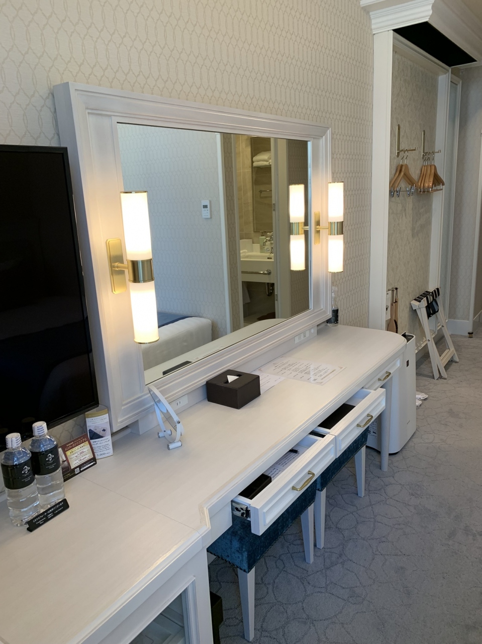 クラシカルな、ロココ調?っぽい雰囲気のお部屋でしたが、トイレの蓋をあけたら、ビシャビシャになっており、フロントにお話しするとお部屋を変えてくださいました。(おそらくウォシュレットがずっと稼働?)