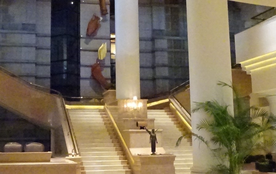 ホテルの1階のロビーの中央階段の下に、原型となる銅像が設置されています。約1mの大きさですが、実際の女神像(みちびきの像)は4mもあるそうです。