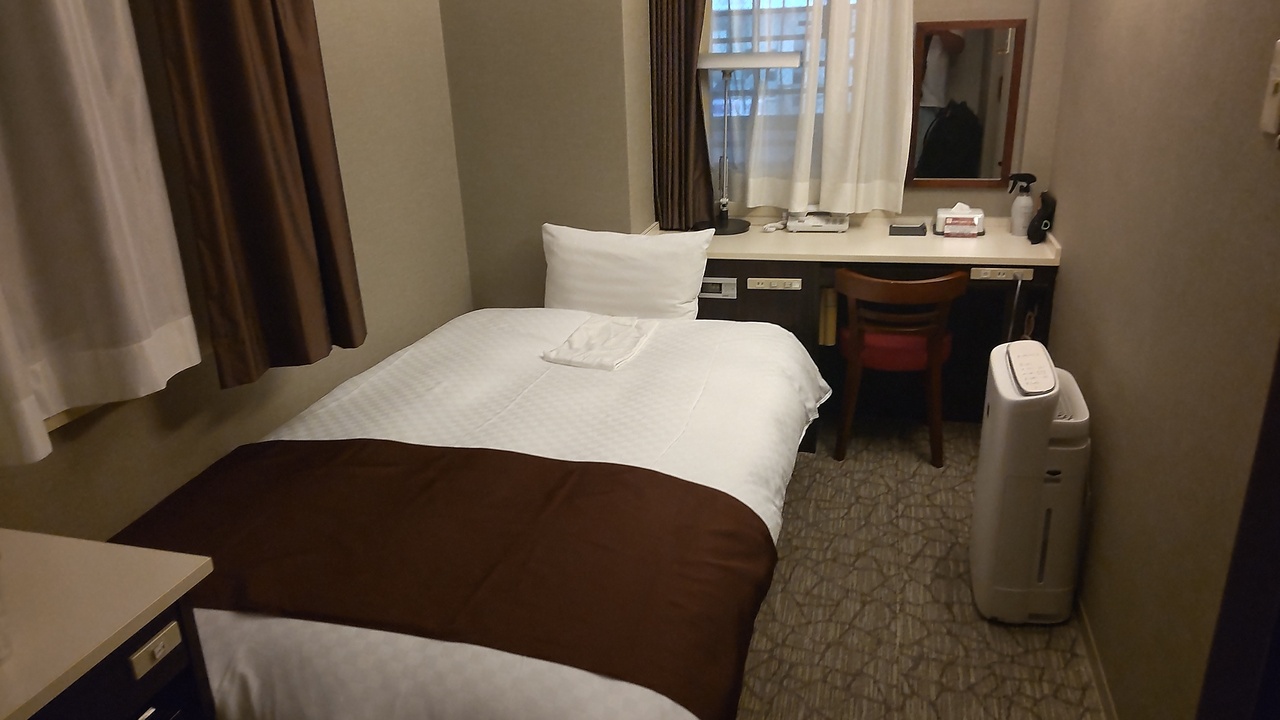 部屋は普通のビジホの広さ。まあ横長の部屋でしたが。