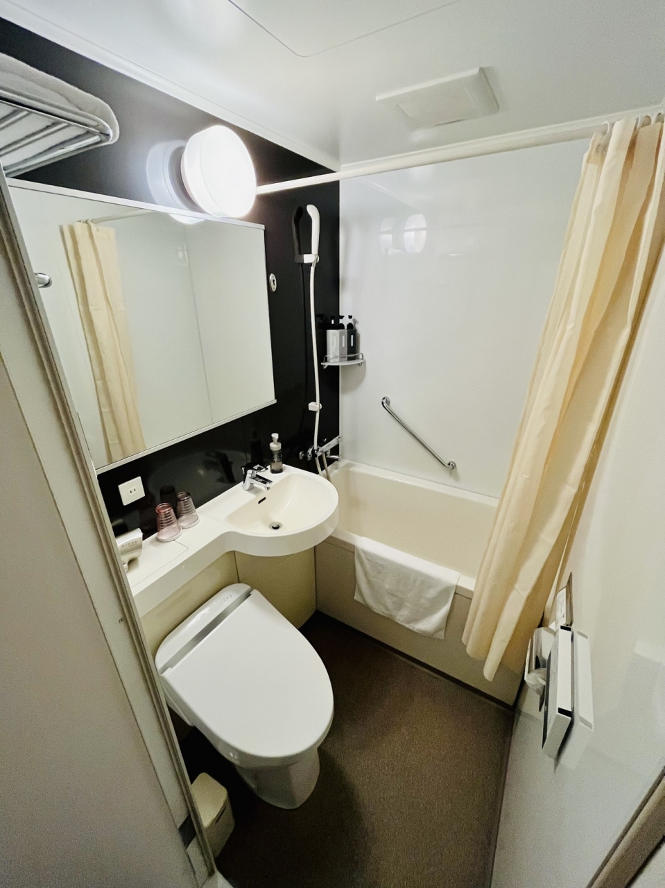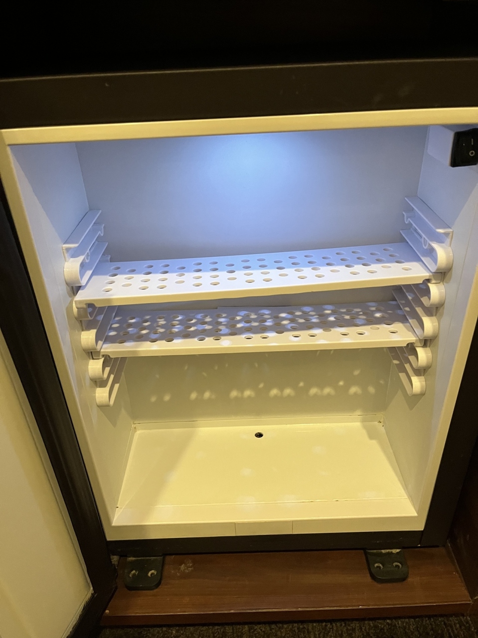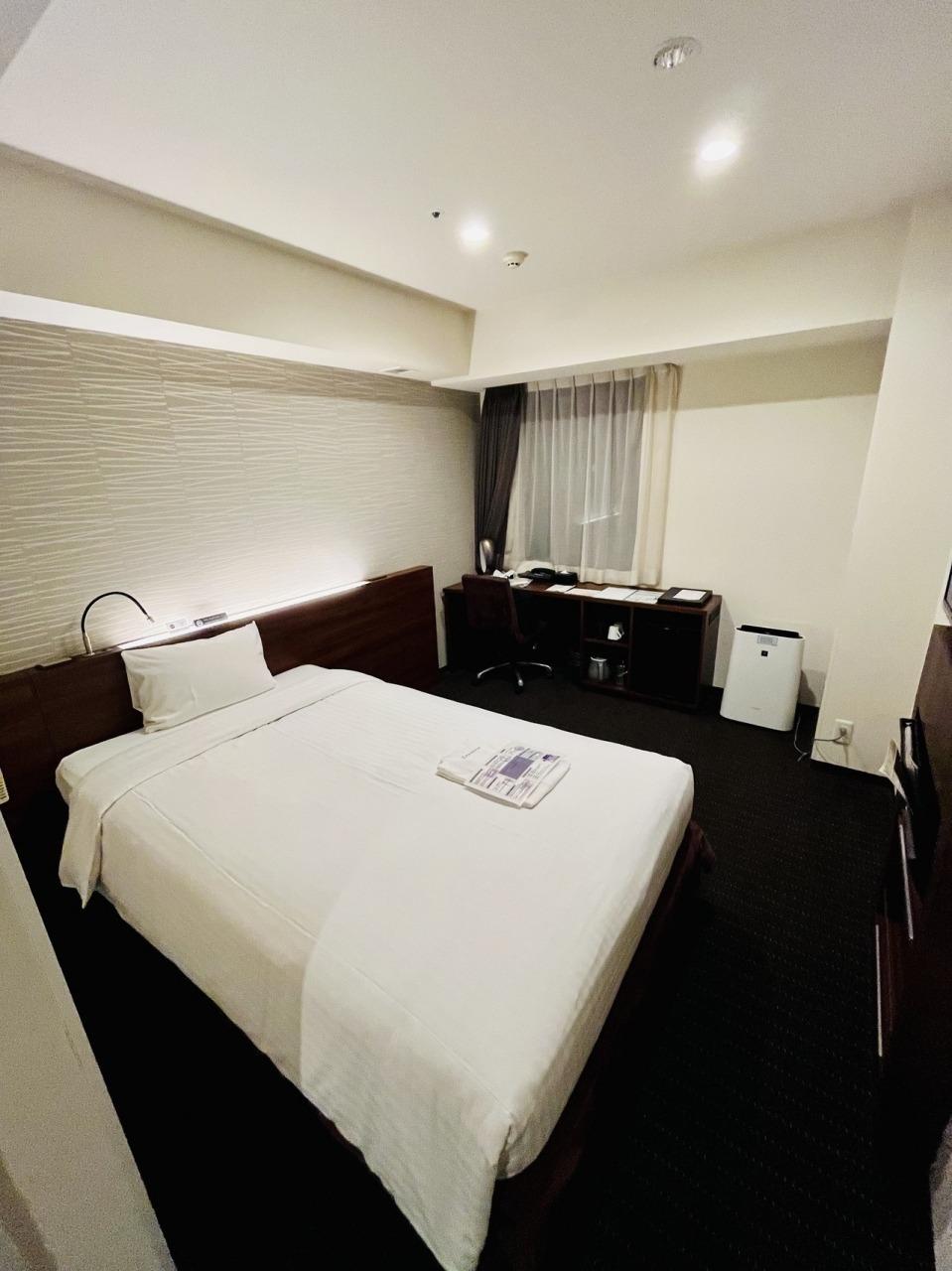 お部屋は広めだけど普通にビジホクオリティ、冷蔵庫は半端なく狭いのが印象的だった。
